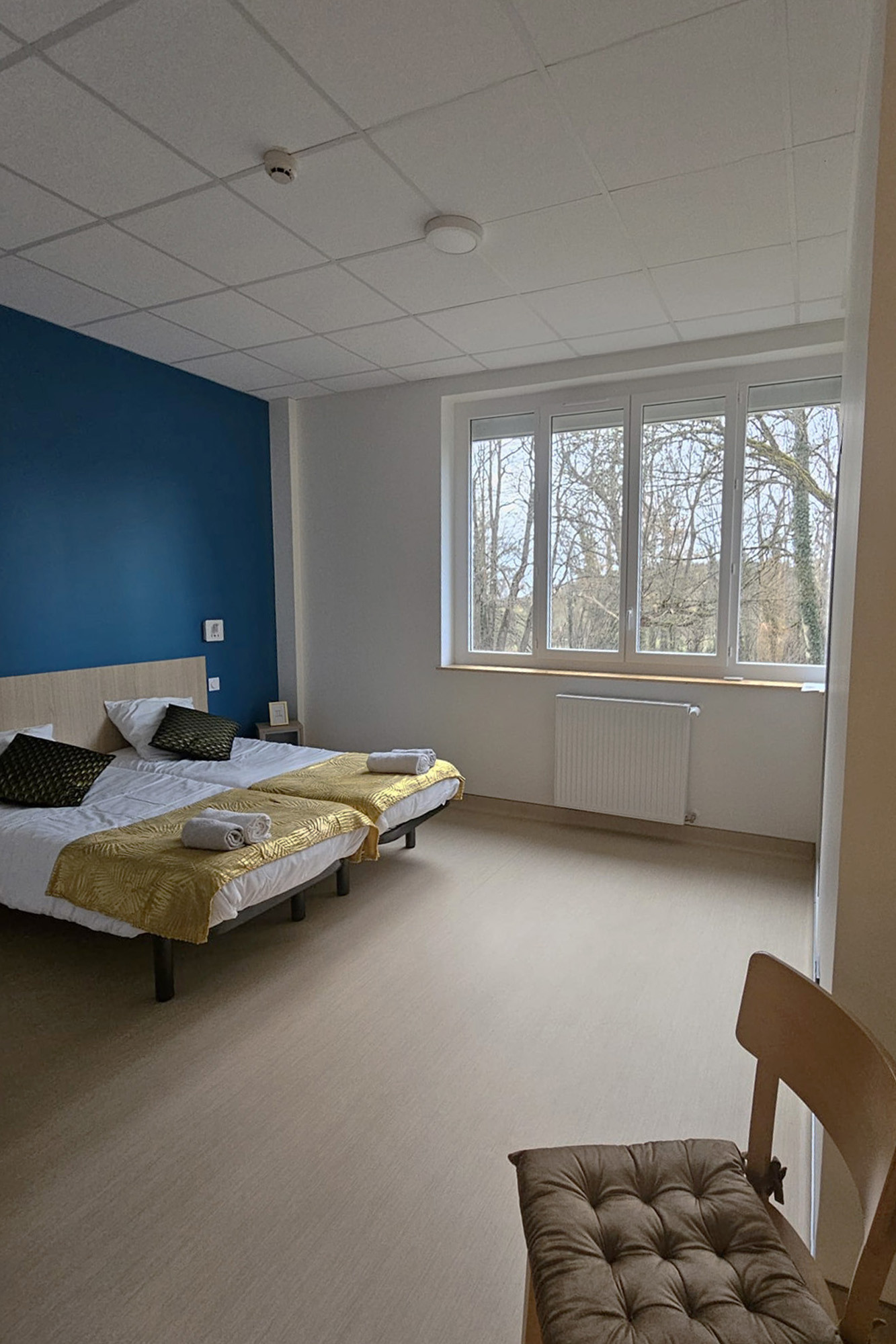 Les chambres sont modernes, lumineuses et conçues pour favoriser le repos, la tranquillité et l’autonomie.